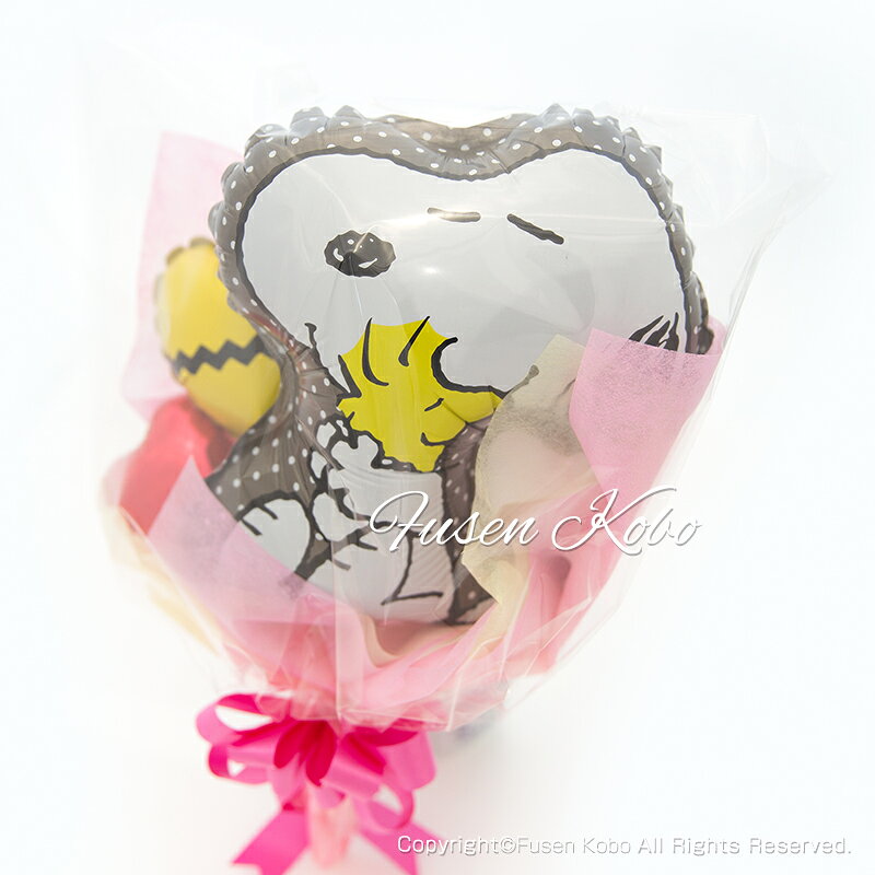 とってもかわいいスヌーピーのお祝いバルーンギフトです。